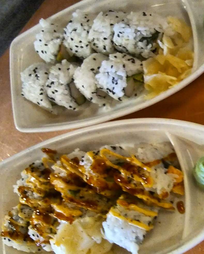 The place is small... It's like one full restaurant was split into two and it literally was, lol. The service was a little slow but the food made up for it. Side note: we waited about 25 minutes for our entrees... I've never waited that long before. Back to the food.....it was great and the waiter was accommodating. We had a party of 3. It was a birthday dinner. We arrived at a busy time on a Saturday... About 5:00pm. I ordered a California Roll. It was a good size. Normally, when I purchase it some where else, it has little crunchy pieces of deliciousness on top. The waiter informed me that theirs didn't have the crunchy deliciousness on top so he offered to put bread crumbs on top and I loved that idea. At the end of our meal, the waiter surprised us with a rainbow cheesecake to help us continue celebrating. I would definitely visit here again. What I did not get a picture of was the fry appetizer. It was amazing! It was basically French fries and pieces of fried lobster with spicy mayo and sour cream dancing across them. It was really good! **Parking: pay lot or parking meter