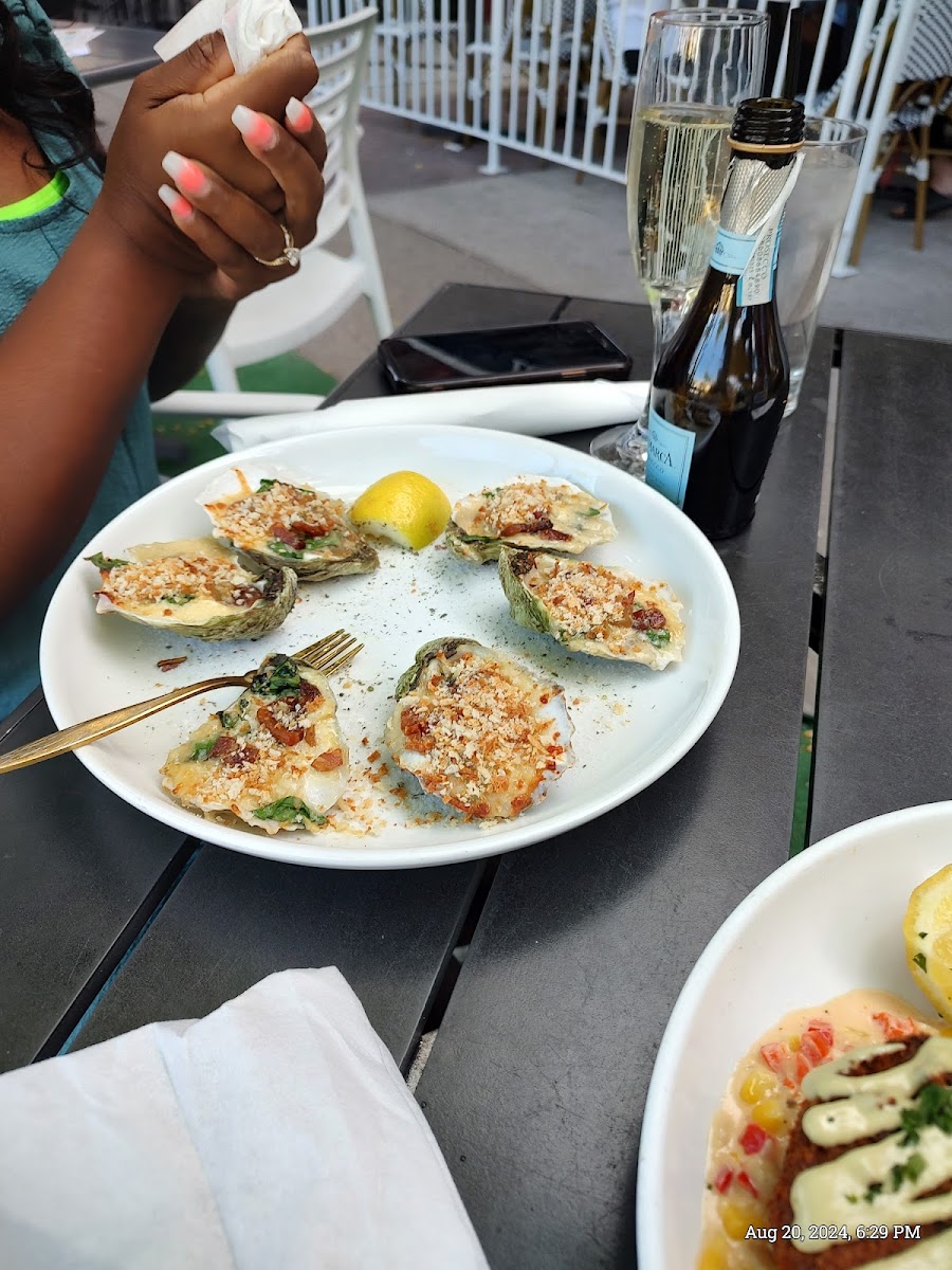 Our waitress was amazing and made sure to keep our drink refills coming without being asked. She helped us choose an amazing appetizer also. The witches brew was really good and the drink being set on fire gave the perfect Halloween vibe. The shrimp and lobster lasagna was amazing!! The cheese pull and richness of the lasagna was perfect cozy food for the Fall. The crab dip was full of lump crab and worth the money. The gnocchi pasta had very little crab for $46, so that was disappointing. Also, the reason for the 4 stars instead of 5 for the food. It would have been my favorite dish if it had more crab because the flavor of the dish was savory and delicious. The carrot cake definitely aligned with the hype!!