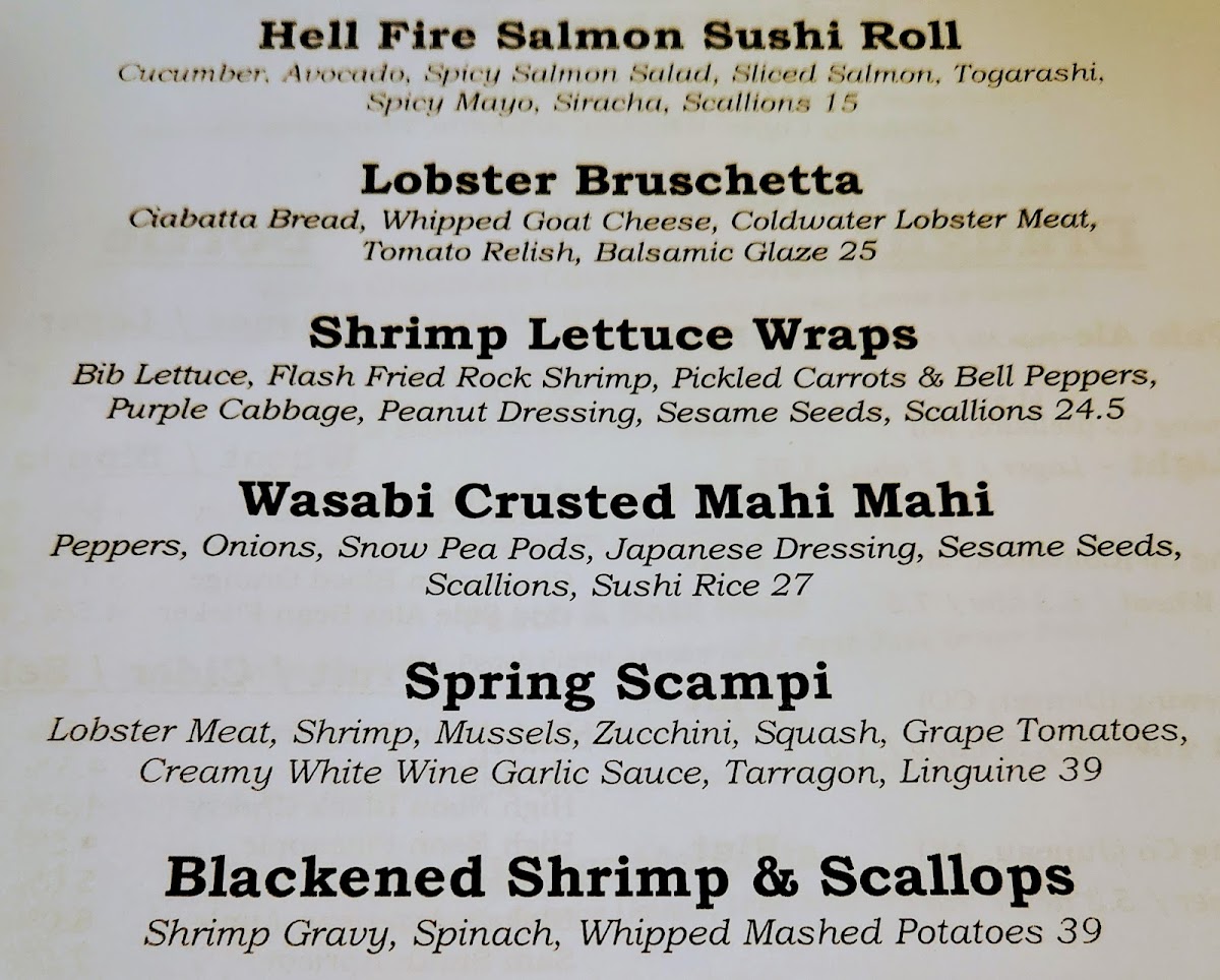 The menu showcases a variety of flavors, from the subtle richness of Lobster Bisque to the satisfying crunch of Fish and Chips. These dishes pair effortlessly with well-crafted drinks, whether you're in the mood for a refreshing Bloody Mary, a smooth Bourbon Glazed Scallop, or a warm Spanish Coffee to round out the evening.